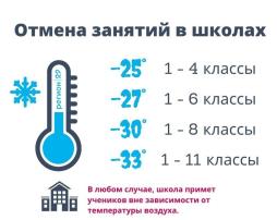 Отмена занятий при понижении температуры 22.12.2025